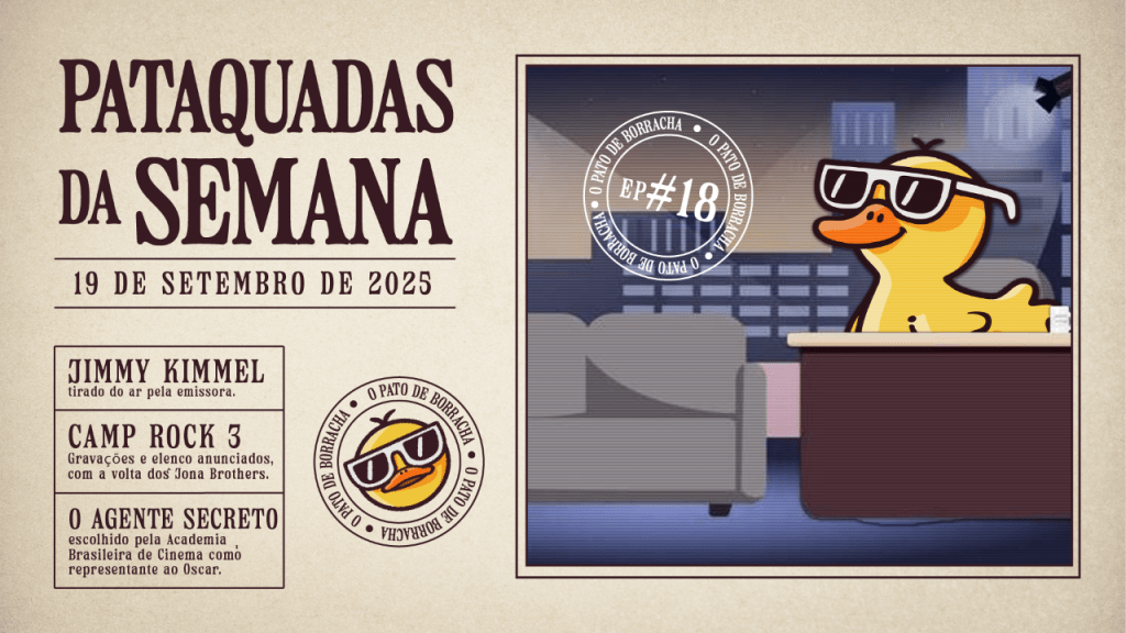 Episódio 18 | Pataquadas da Semana! Jimmy Kimmel foi tirado do ar pela emissora, Camp Rock 3 anunciado com elenco, Agente Secreto escolhido para representar o Brasil no Oscar e a perda do grande Robert Redford. Esses e outros destaques estão no nosso novo quadro de notícias. Ouça no Spotify; Apple Podcasts e YouTube!